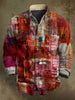 Abstract Color-Blocked Graffiti Line Print Casual Long-Sleeve Shirt