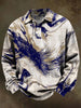 Abstract Color-Blocked Print Casual Long-Sleeve Polo Shirt