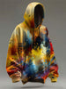 Abstract Color-Blocking Oil Painting Print Casual Hooded Sweatshirt