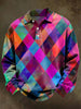 Abstract Color-Woven Plaid Print Casual Long-Sleeve Polo Shirt