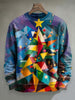Abstract Colorful Christmas Tree Print Casual Crewneck Sweatshirt