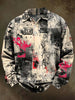Abstract Doodle Print Casual Long-Sleeve Polo Shirt