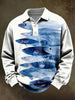 Abstract Fish School Print Casual Long-Sleeve Polo Shirt