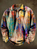 Abstract Gradient Floral Print Casual Long-Sleeve Polo Shirt