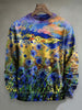 Abstract Gradient Ink-Splash Texture Print Casual Crewneck Sweatshirt