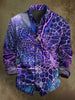 Abstract Purple-Blue Cell Spider Web Print Casual Long-Sleeve Shirt