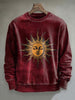 Abstract Retro Sun Print Casual Crewneck Sweatshirt