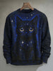 Abstract Starry Cat Print Casual Crewneck Sweatshirt