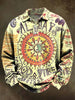 Abstract Sun Print Casual Long-Sleeve Polo Shirt
