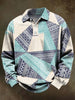 Abstract Vintage Ethnic Geometric Print Casual Long-Sleeve Polo Shirt