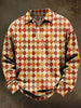 Abstract Vintage Plaid Print Casual Long-Sleeve Polo Shirt