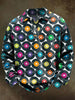 Abstract Vinyl Record Print Casual Long-Sleeve Polo Shirt