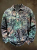 Dark Night Scroll Pattern Printed Casual Long-Sleeve Polo Shirt