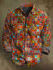 Geometric Pixel-Printed Casual Long-Sleeve Shirt