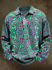 Psychedeliclrregular Geometric Print CasualLong-Sleeve Polo Shirt