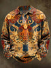 Retro Abstract Floral Print Casual Long-Sleeve Polo Shirt