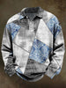 Retro Abstract Geometric Floral Print Casual Long-Sleeve Polo Shirt