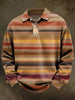 Retro Color-Block Striped Print Casual Long-Sleeve Polo Shirt