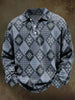 Retro Diamond-Patterned Print Casual Long-Sleeve Polo Shirt