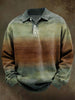Retro Gradient Striped Print Casual Long-Sleeve Polo Shirt
