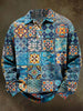 Retro Mandala Floral Print Casual Long-Sleeve Polo Shirt