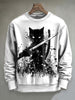 Samurai Cat Print Casual Crewneck Sweatshirt