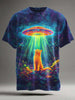 Vibrant UFO Cat Print Casual Short-Sleeve T-Shirt